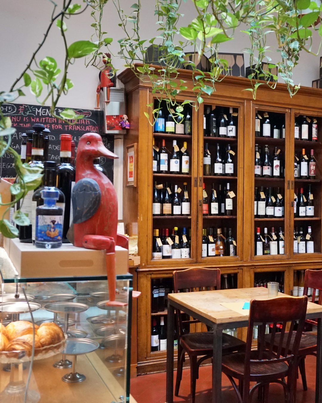 골목을 거닐다 우연히 토도 모도(Todo Modo)를 보게 된다면 어디서나 흔히 볼 수 있는 평범한 서점으로 인식하기 쉽다. 섣부른 판단은 금물! 좁은 매장 안 책장 사이를 지나 ‘Uqbar’라고 적힌 화살표를 따라 들어가다 보면 수많은 책만큼이나 다양한 와인과 이야기가 기다린다. 2014년 산타마리아노벨라((Santa Maria Novella) 지역 골동품 거리에서 문을 연 토도 모도는 카페 겸 와인 바다. 서점 운영자, 출판인, 와인 생산자 등으로 구성된 팀이 이끄는 문화 공간으로, 커피나 와인 또는 식사를 즐기며 책을 읽을 수 있는 문화 공간이기도 하다. 소설과 시, 에세이 등 다양한 장르의 도서부터 외국 중고 서적까지, 직접 큐레이션한 책을 만날 수 있다. 바에는 페이스트리, 파스타 등 메뉴와 다양한 이탈리아 와인 리스트가 준비돼 있다. 식물과 목재 가구가 조화를 이룬 인테리어는 따뜻하고 편안한 분위기. 양쪽 벽면을 가득 채운 책장 사이에 마련된 계단식 좌석은 마치 연극 무대의 객석 같다. 이에 어울리게 낭독회나 영화 상영, 소규모 콘서트 등 다양한 문화 행사도 종종 열린다.