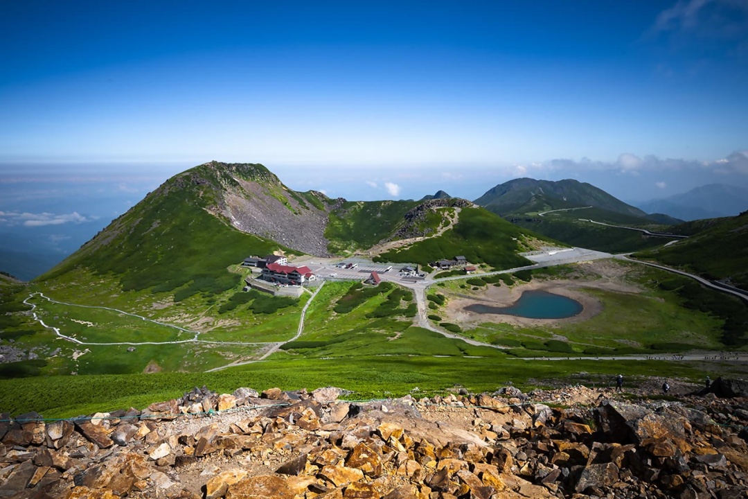 호노키다이라(ほおのき平) 정류장에서 노리쿠라 스카이라인(Norikura Skyline) 버스로 갈아타면, 일본에서 가장 높은 곳에 들어선 버스 정류장인 노리쿠라타다미다이라(乗鞍畳平)까지 약 1시간 만에 다다를 수 있다. 해발 고도는 2,702미터. 정류장 주변에는 사시사철 색과 형이 변하는 고산식물의 보고가 그림처럼 드넓게 펼쳐진다. 평지에 가까운 고원 지대가 형성되어 있는데, 투명한 호수와 설산의 흔적이 이곳의 고도를 실감하게 해준다. 잘 정비된 등산로에서 주변을 하이킹해도 좋고, 주변의 봉우리를 과감하게 오르내려도 문제없다. 정상인 겐가미네(剣ヶ峰)까지는 걸어서 약 1시간 30분. 몇 번의 밭은 숨만 참으면, 해발 3,000미터에서 바라보는 북알프스의 풍경을 선물로 쟁취할 수 있다. 장엄함과 상쾌함이 온몸의 기운을 북돋아주는 것은 물론이고.