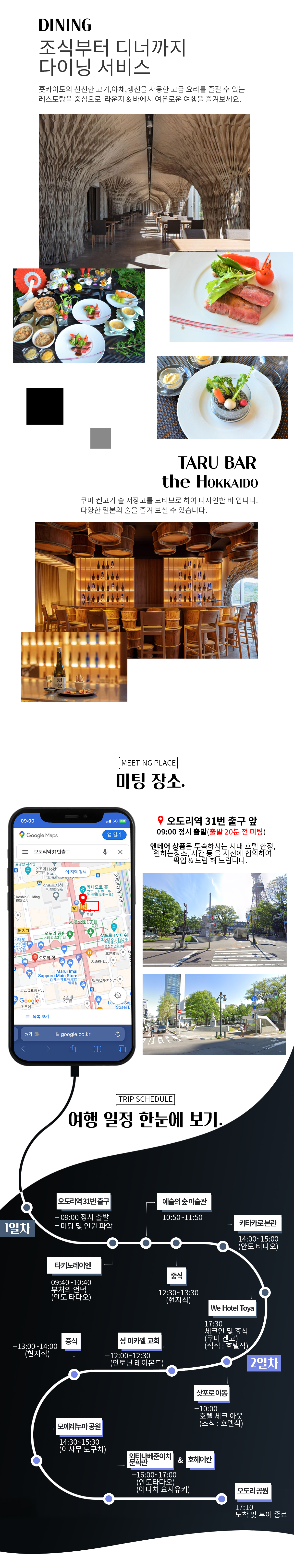 - 집결 장소 : 삿포로 오도리역 31번 출구 앞 08:40 집결, 09:00 정시 출발