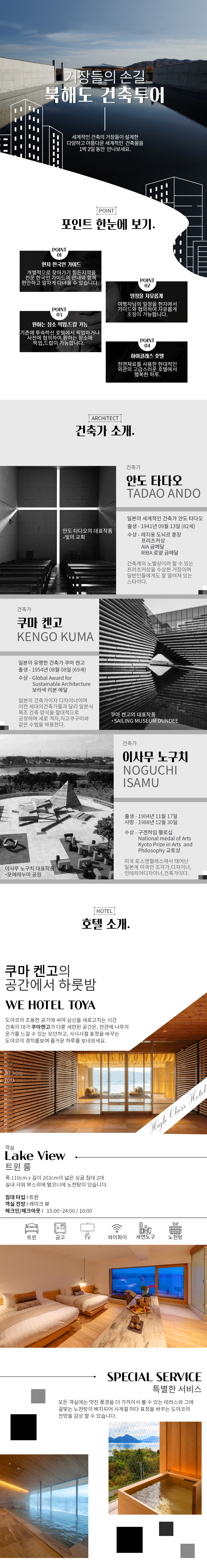 - 안도 타다오, 쿠마 켄고, 이사무 노구치 등 일본을 대표하는 건축가의 홋카이도 내 작품 총 망라한 건축 투어